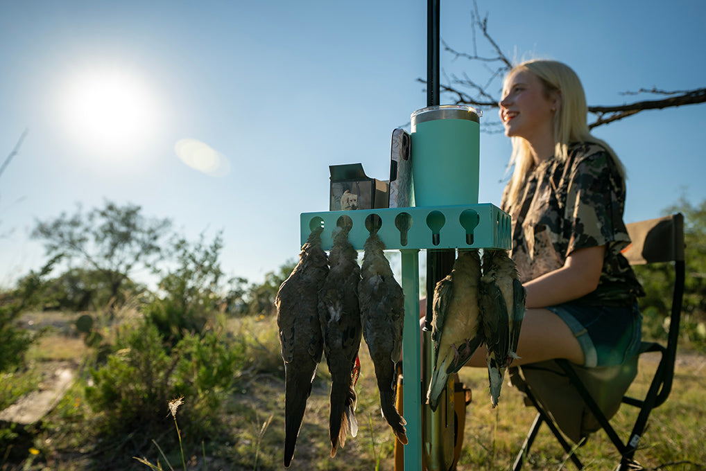 It's like having an end table in the pasture, it keeps your birds off the ground and away from the ants while also holding your gun, beverage, cell phone, and a box of shells.